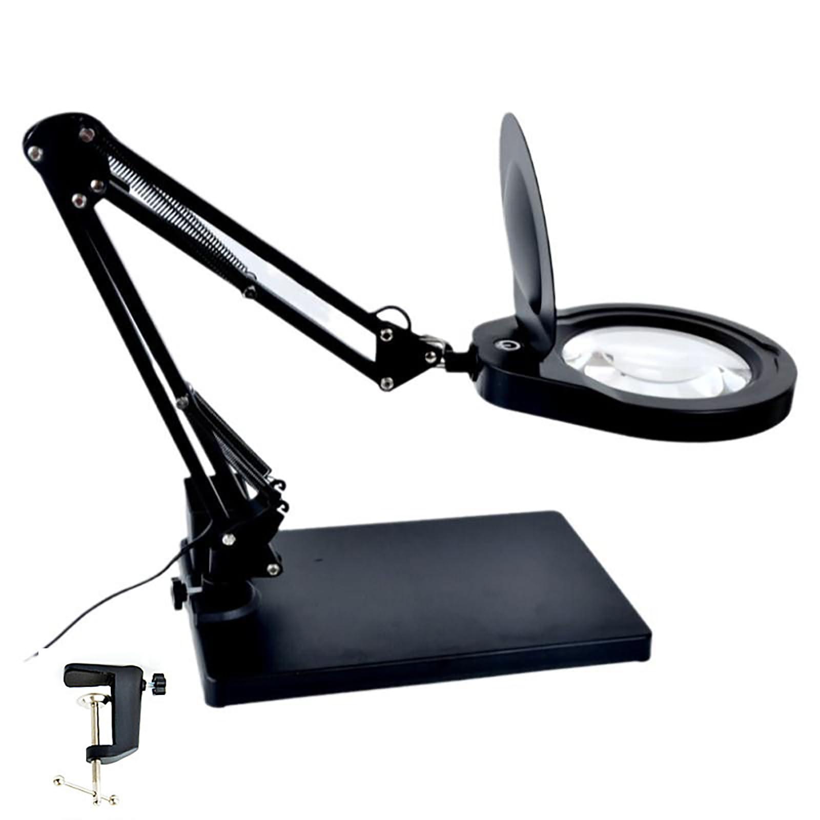 - 2-in-1 Heavy Duty Magnifying Desk lamp & Clamp Light :The magnifier lamp has been upgraded to a sturdy large base whose.It is heavy enough to support the lamp when fully extended to make the lamp not flop. It also comes with a metal clamp which can clip the table/ workbench/desktop sturdy. Portable magnifying glass with light to free your hands can point glass and light to the location you need.