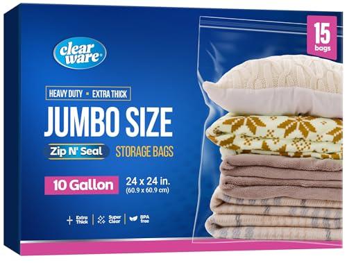 - {Use These Plastic Sealable Pouches Everywhere} Use the 10 gallon clear plastic bags for linens, bedsheets, toys, and other brick-a-brack. Or use the extra large waterproof storage bags to store and organize your stuff. They're great for packing, moving, and organizing - and as large freezer bags too.