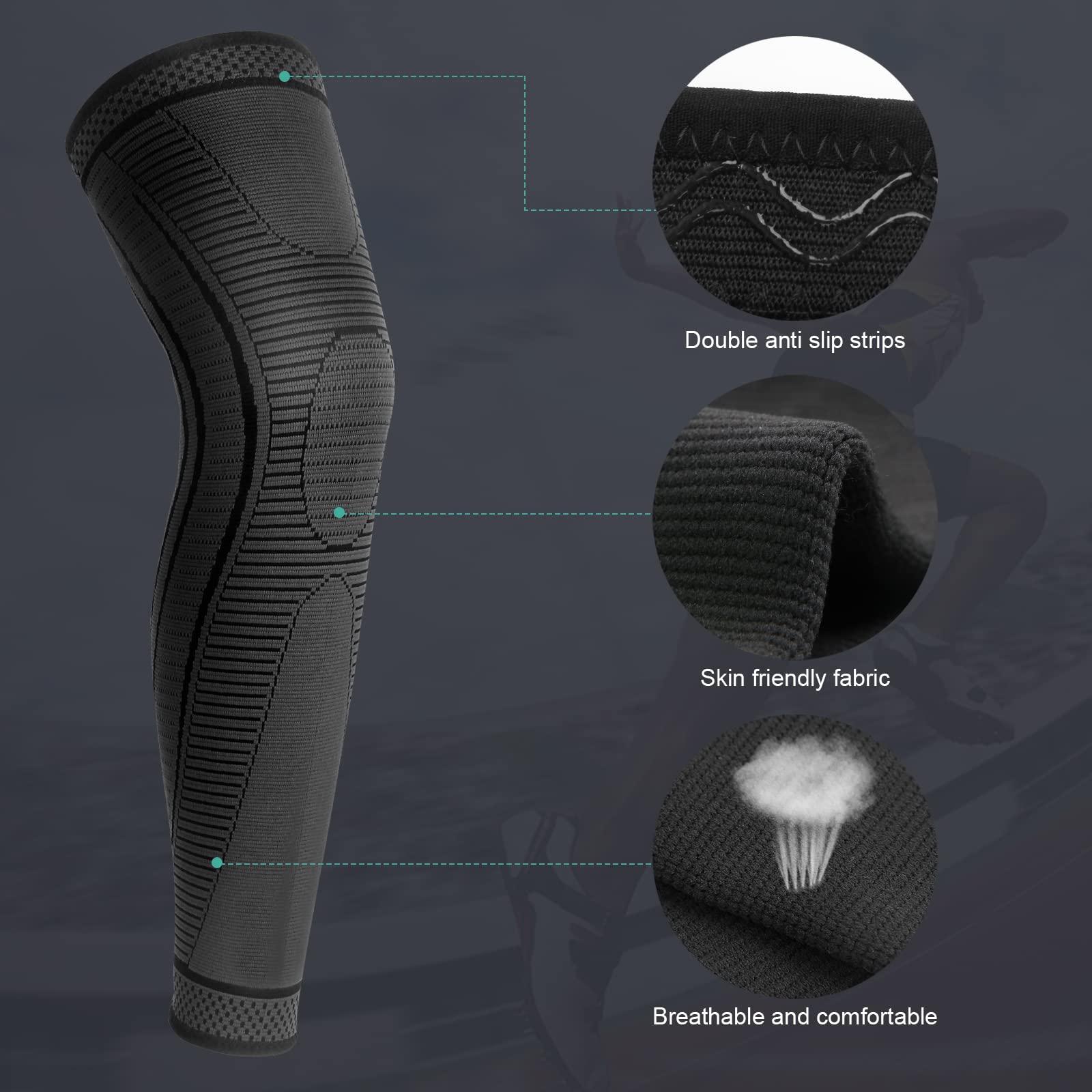 2 Pack Full Leg Compression Sleeves, Long Knee Brace Support for ACL,PCL, Meniscus Tear, Arthritis, Tendinitis, Joint Pain Relief, Men And Women (X-Large, Black)