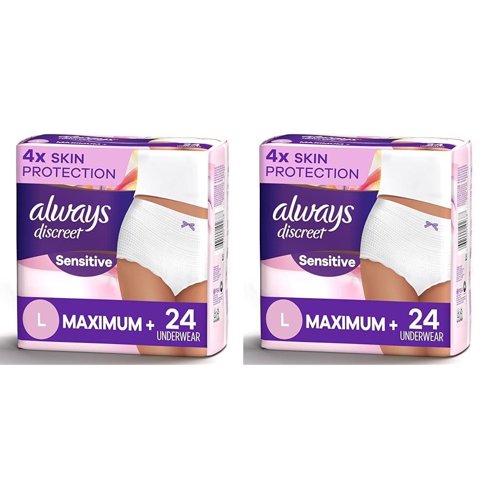 Always Discreet Always Discreet Sensitive, Incontinence & Postpartum Underwear for Women, Maximum Plus Protection, Large, 24 Count (Pack of 2)