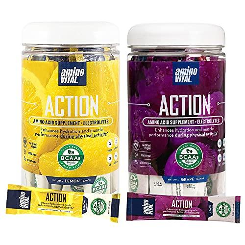 HYDRATE WITH ELECTROLYTES – Dehydration can cause muscle cramping, loss of focus and fatigue. amino VITAL Action provides sodium and potassium to assist in water regulation, muscle contraction, and muscle strength. Drink Action to fight mental and muscle fatigue during exercise.
