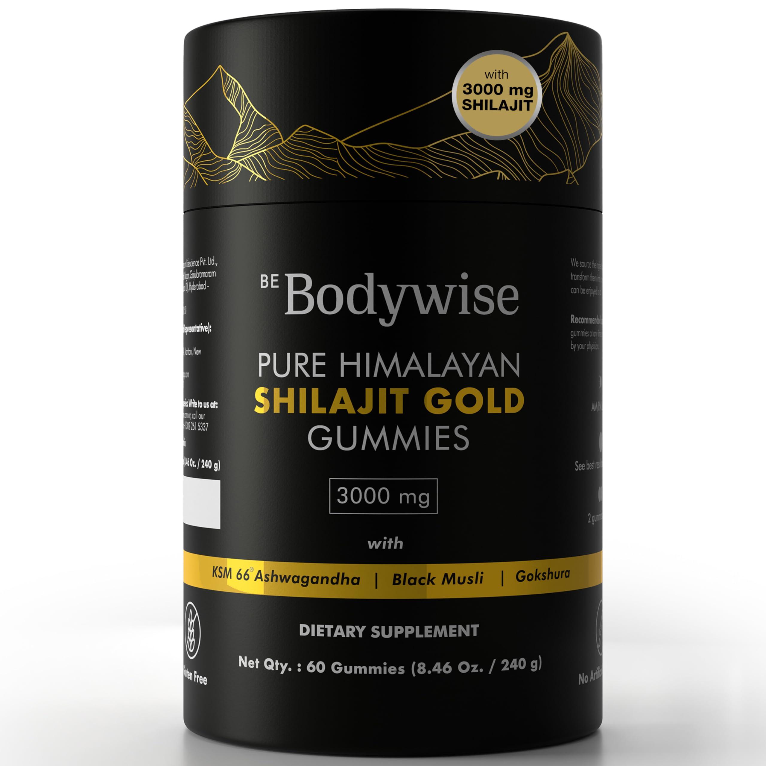 - LAB TESTED & PREMIUM QUALITY: Be Bodywise Pure Himalayan Shilajit Resin Gold Gummy is Lab Tested to be free from heavy metals, fillers, and harmful additives. Crafted in its most authentic form, it has no added sugar, corn starch, glucose syrup, artificial colours, or gum. It's completely vegan, natural, and non-GMO.