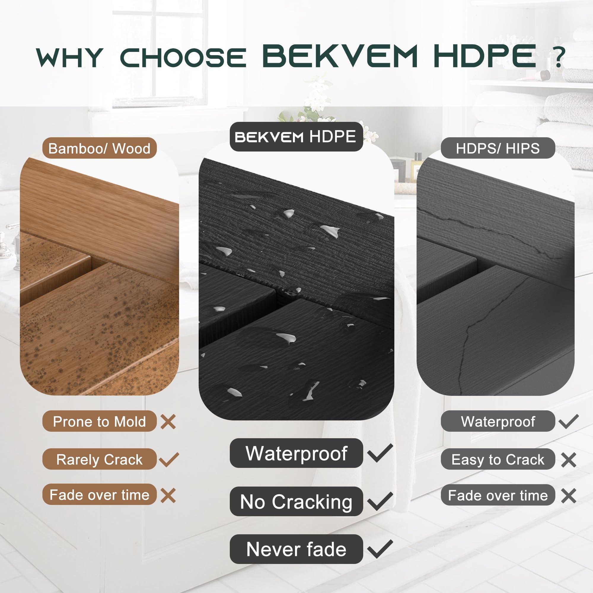 - [100% HDPE]: HDPE is a durable, eco-friendly material which mimics the look of wood. It performs better than wood in terms of water resistance, weather resistance, scratch resistance, stain resistance, and durability.