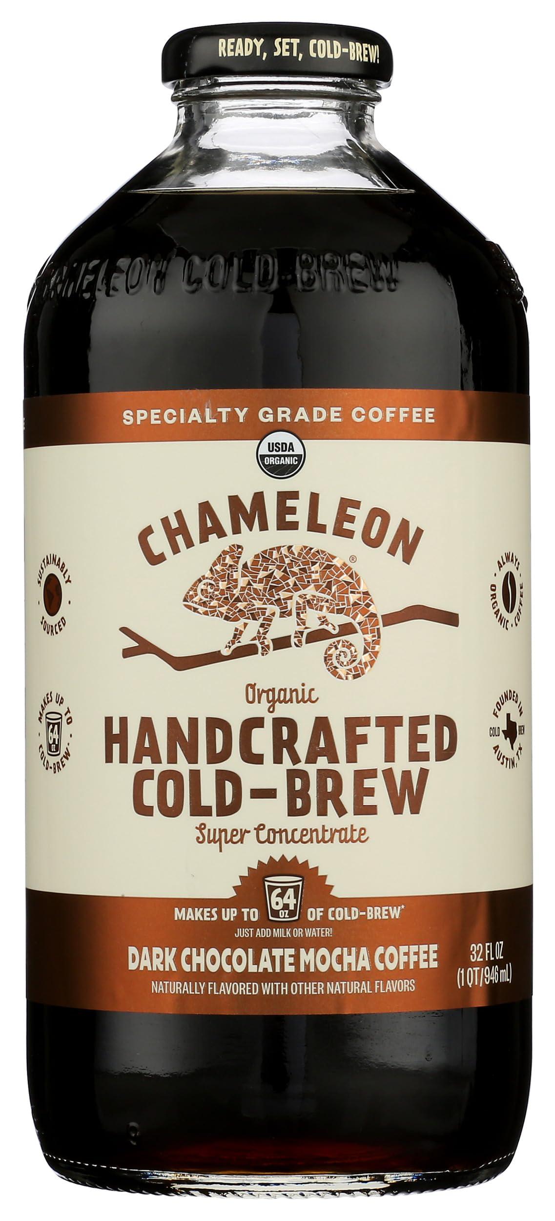 Chameleon organic mocha flavored cold brew coffee concentrate raises your coffee standards with smooth, mocha flavored coffee. Made from specialty-grade, sustainably sourced coffee beans, each batch of this organic coffee is expertly crafted to deliver low acid, super smooth coffee every time. This coffee drink concentrate contains 15 calories per serving. Chameleon Cold Brew coffee concentrate comes in a glass bottle with an easy-to-open screw top for convenience, just mix whenever you want a more robust cold coffee, or mix and pour it over ice for easy iced coffee. Each bottle of chameleon coffee comes ready to mix with no brewing required. Ready, set, cold-brew!