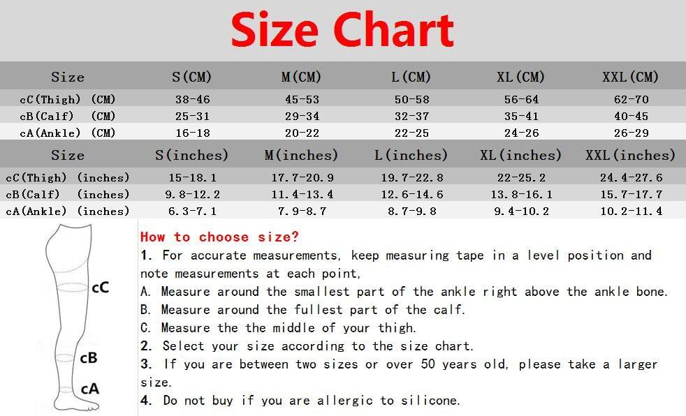 - Comfort for All-day Wear: These compression stockings feature a wide, comfortable silicone top band that stays in place and makes it easy to put on. Silicone grip dot-top lining prevents rolling and slipping, Knit heel pocket keeps garment in place throughout the day without constricting the leg. Reinforced heel, designed for long lasting durability. Enjoy these open toe, closed toe, footless stockings. There's always one suit for you.