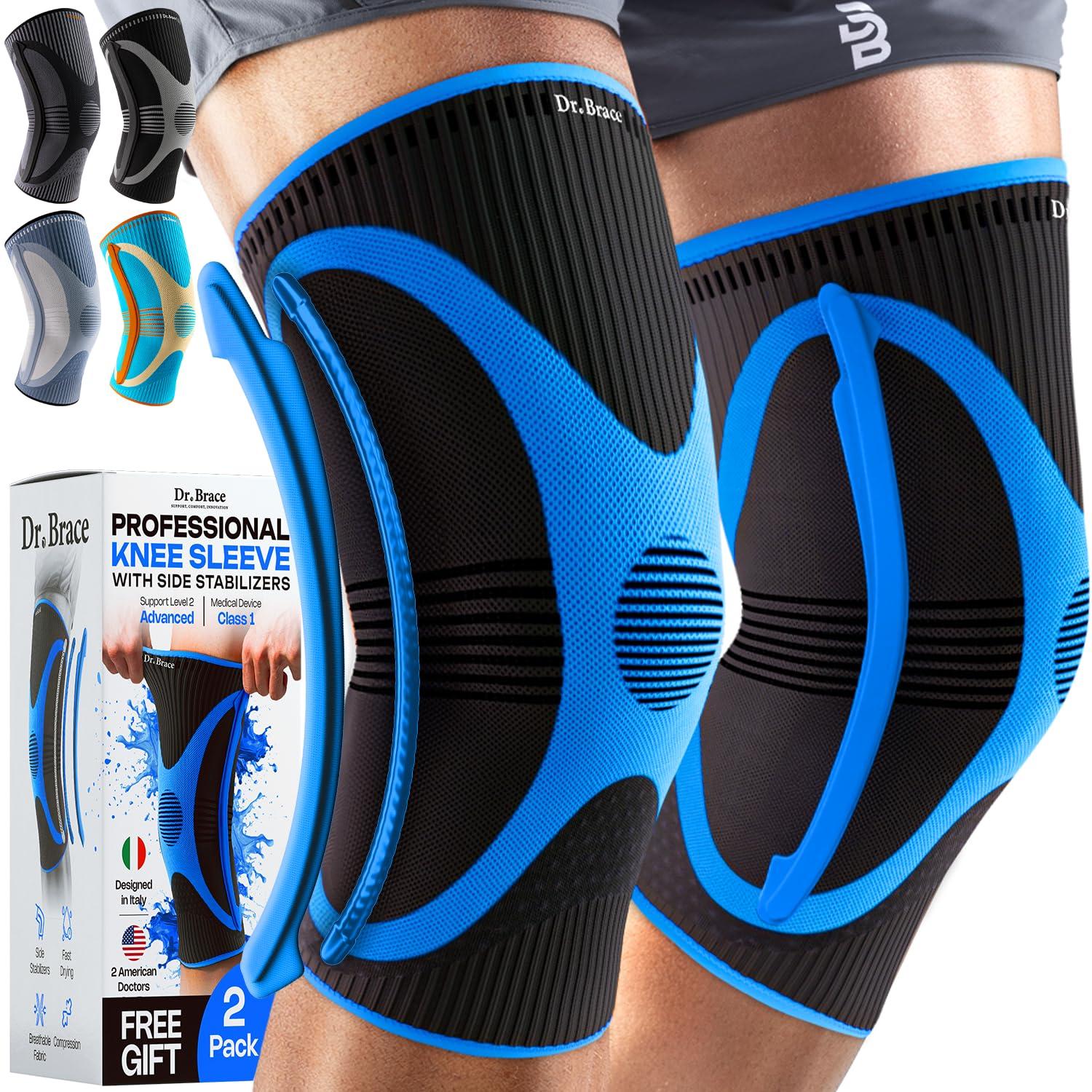DR. BRACE ELITE Knee Compression Sleeve with Size Stabilizer {2 Pack} Knee Brace for Women & Men, Workout, Sports, Daily Knee Braces for Maximum Knee Pain Support & Fast Recovery - Check Size Guide Video