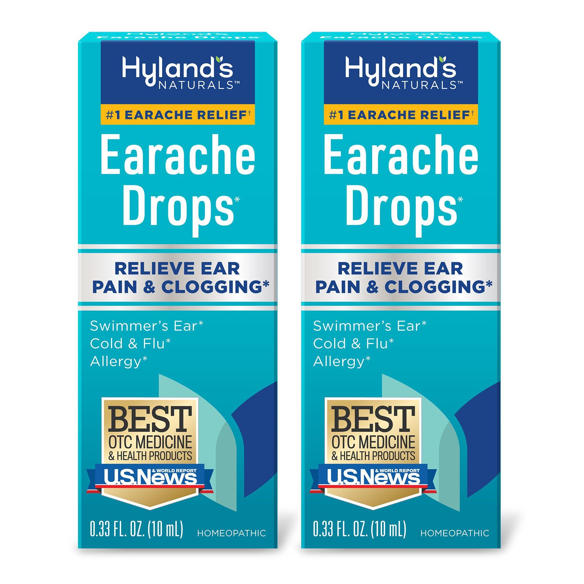 Hyland's Earache Drops provide fast year-round relief of ear pain and clogging due to swimmers ear, cold or allergies, all with no alcohol, no numbing, and no stinging. Hyland's Earache Drops temporarily relieves common pain or itching from swimmers ear, clogged ears, and ear pain or itching from other earaches, after diagnosis by a physician. Each 0.33 Oz. bottle contains up to 150 drops of Hyland's Earache Drops. The dosing dropper allows for easy delivery into ear. To use, tilt head sideways and apply 3-4 drops into involved ear, keep head tilted for at least 2 minutes to keep drops in ear, repeat until relieved, up to 4 times per day. Hyland's Earache Drops is safe and non-habit forming, and free of sodium benzoate. Hylands is a leading consumer health brand with more than a century of history making high quality products to help people live healthier and happier lives.