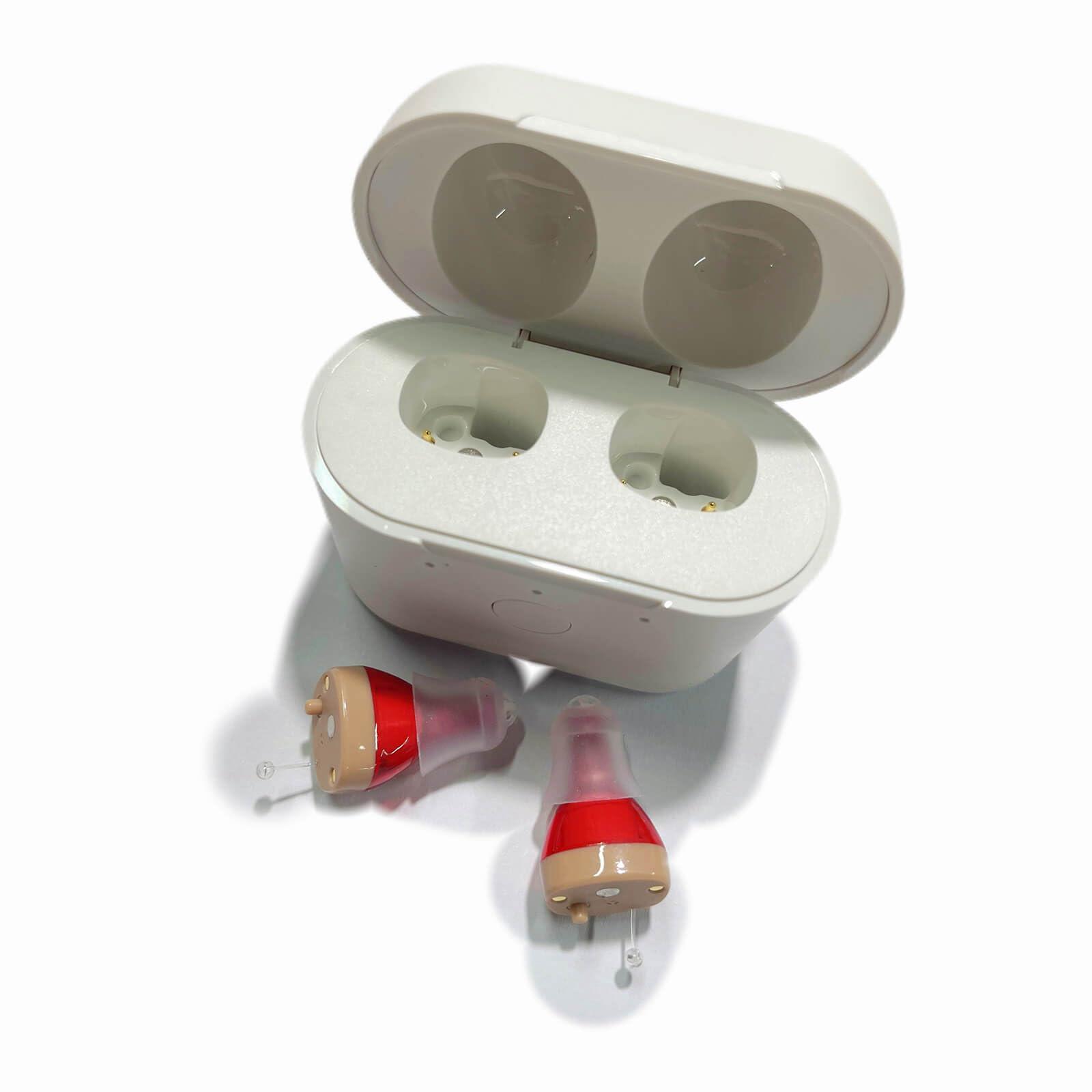 - Discrete Design: In ear hearing aids are small in size and almost invisible in your ears. They have a tail with a barb on it so you can easily pull them out of your ears. Don't worry about your glasses, masks or hair getting caught with our seamless OTC hearing aid that has no tubes or wires.