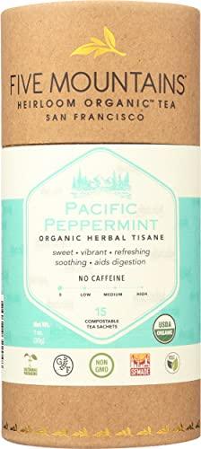 Five Mountains Organic Pacific Peppermint, 15 non-GMO Caffeine-Free Herbal Tea Bags