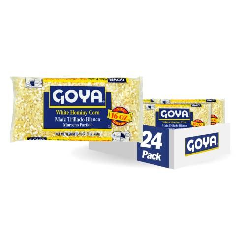 Goya Foods White Hominy Corn, 16 Ounce (Pack of 24) | One of the most consumed grains in the world, GOYA White Hominy Corn is perfect for preparing delicious arepas, bread dough or desserts. They're also an excellent source of energy with low fat that helps keep a daily diet healthy. A natural product that you can enjoy as an appetizer, inside soups or salads and in between meals. Rich in vitamin E, iron, potassium, magnesium and other minerals..