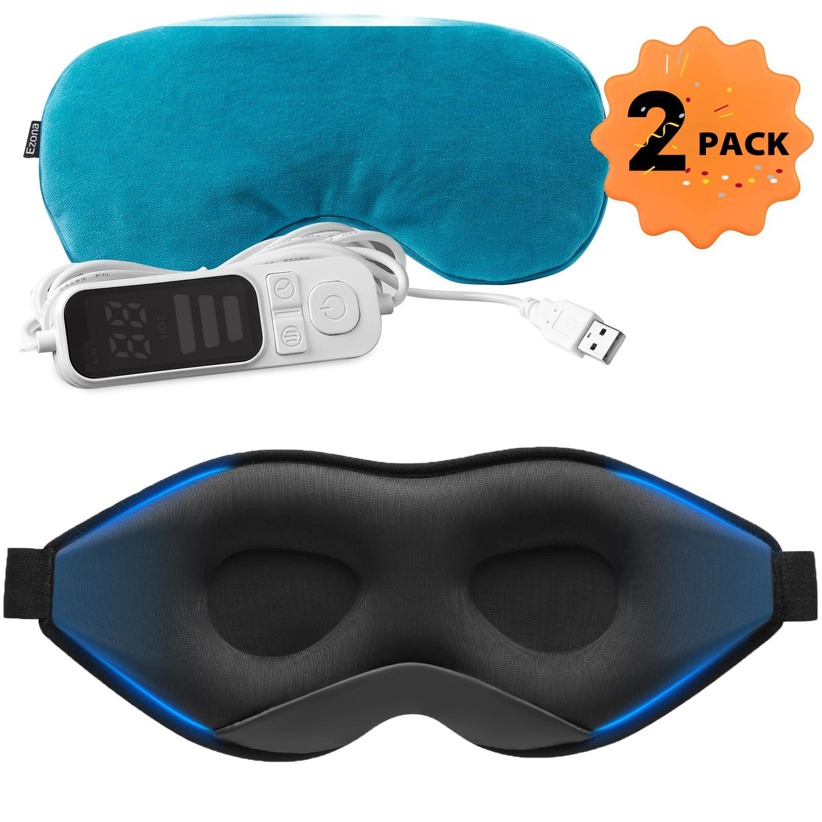 Heated Eye Mask, Warm Eye Compress Mask for Dry Eyes, USB Electric Eye Heating Pad with Temperature & Timer Control, Dry Eye Mask for Dry Eyes Blepharitis Sinus Migraine Stye MGD Puffiness Gray, Sleep Mask, 3D Deep Contoured Eye Mask Sleeping for Men and Women, Suitable Side Sleeper 100% Light Blocking Blindfold & Eye Cover, Soft Comfort Eye Shade for Night Shift Travel Yoga Nap, Black