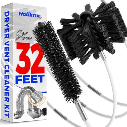 Holikme 32 Feet Dryer Vent Cleaning Brush Kit, Lint Remover,Fireplace Chimney Brushes, Extends Up to 32 Feet, Synthetic Brush Head