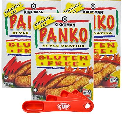 By The Cup Bundle includes: 3 - 8 oz boxes Kikkoman Gluten-free Panko Style Coating with resealable inner bags 1 set By The Cup Swivel Measuring Spoons Now with Kikkoman Gluten-Free Panko you can enjoy the same crunchy texture without wheat, but with all the same great flavor. Along with the 3 grams of protein in each serving, it is free of gluten, soy, egg, and nuts. Gluten-Free Panko creates a unique coating that's light and crispy.It browns quickly to give a professional finish to whatever you are coating or topping. Kikkoman Gluten-Free Panko is unseasoned making it perfect to season to your own taste with spices, cheese, or herbs.By The Cup Swivel Measuring Spoons measure 1/4 tsp, 1/2 tsp,1 tsp & 1 Tablespoon. All spoons are sized to fit standard spice jars and can quickly be separated.