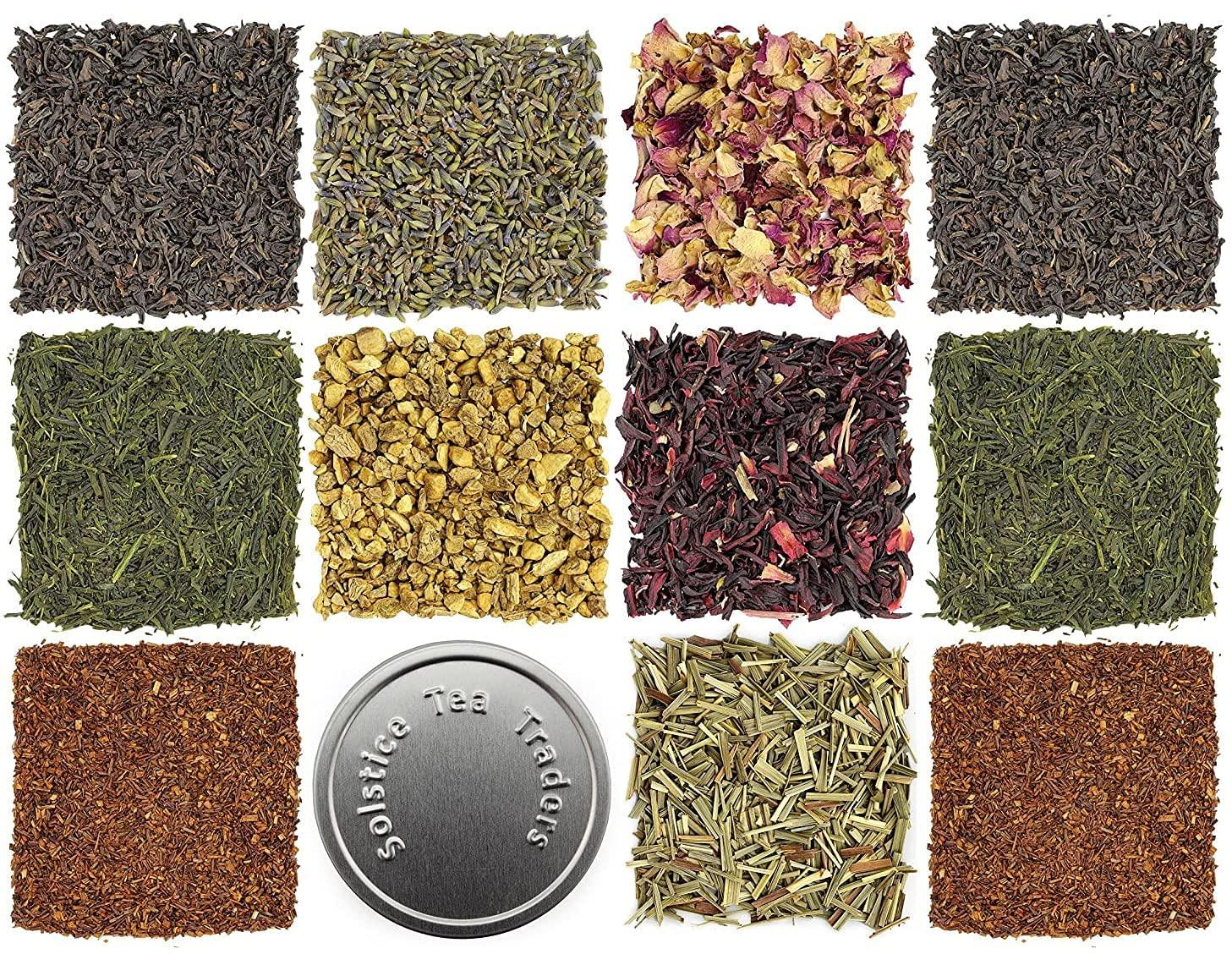 - INCLUDES: 6 tins of loose leaf tea, 5 tins of herbal flavoring, & 1 empty mixing tin