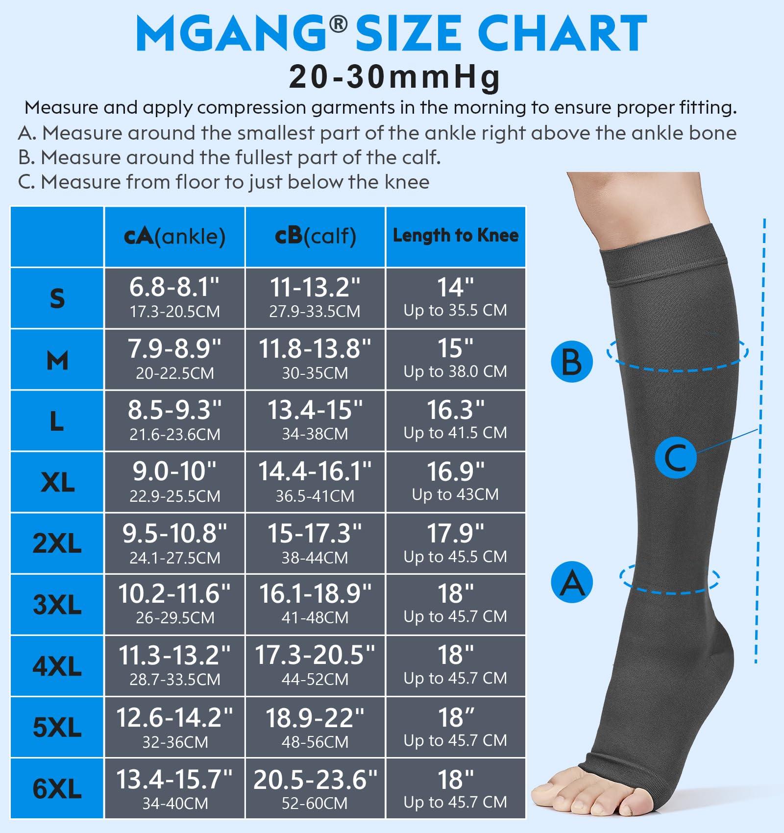 - Super Comfortable & Durable Open Toe Compression Socks: Our extra large wide calf compression stockings socks for women plus size go from 3XL up to 6XL, offering amazing comfort for anyone with wider calves. Utilizing Germany specialized fabricating machinery and medical grade fabrics, these 20-30mmhg medical compression stockings socks made of 70% durable Nylon and 30% Lycra Spandex, that's why our plus size compression stockings women & men are made for maximum performance and durability.