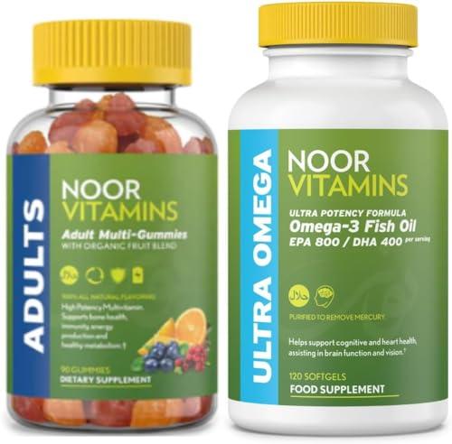 Noor Vitamins Halal Vitamins Adult Bundle - Multivitamin Gummies and Ultra Omega 3