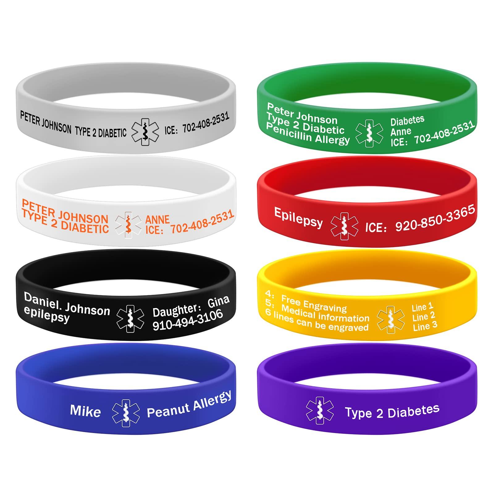 - Personalized Medical BraceletPersonalized ID bracelets is light, durable and stylish, perfect for everyday wear. It allows you to engrave information such as your name, emergency contact numbers, and medical information.