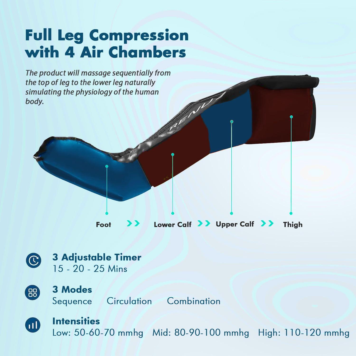 - Advanced Design: Featuring large airbag chambers, the system ensures comprehensive leg coverage. The high-capacity air pump allows for quick inflation and deflation easily.