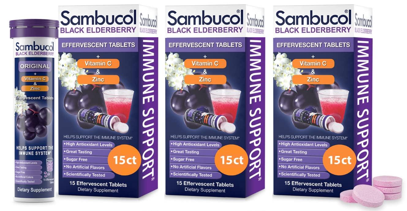 - BLACK ELDERBERRY EFFERVESCENT TABS - Sambucol Effervescent Tabs are made with antioxidant-rich black elderberries to help provide powerful support for your immune system, general health, & wellbeing