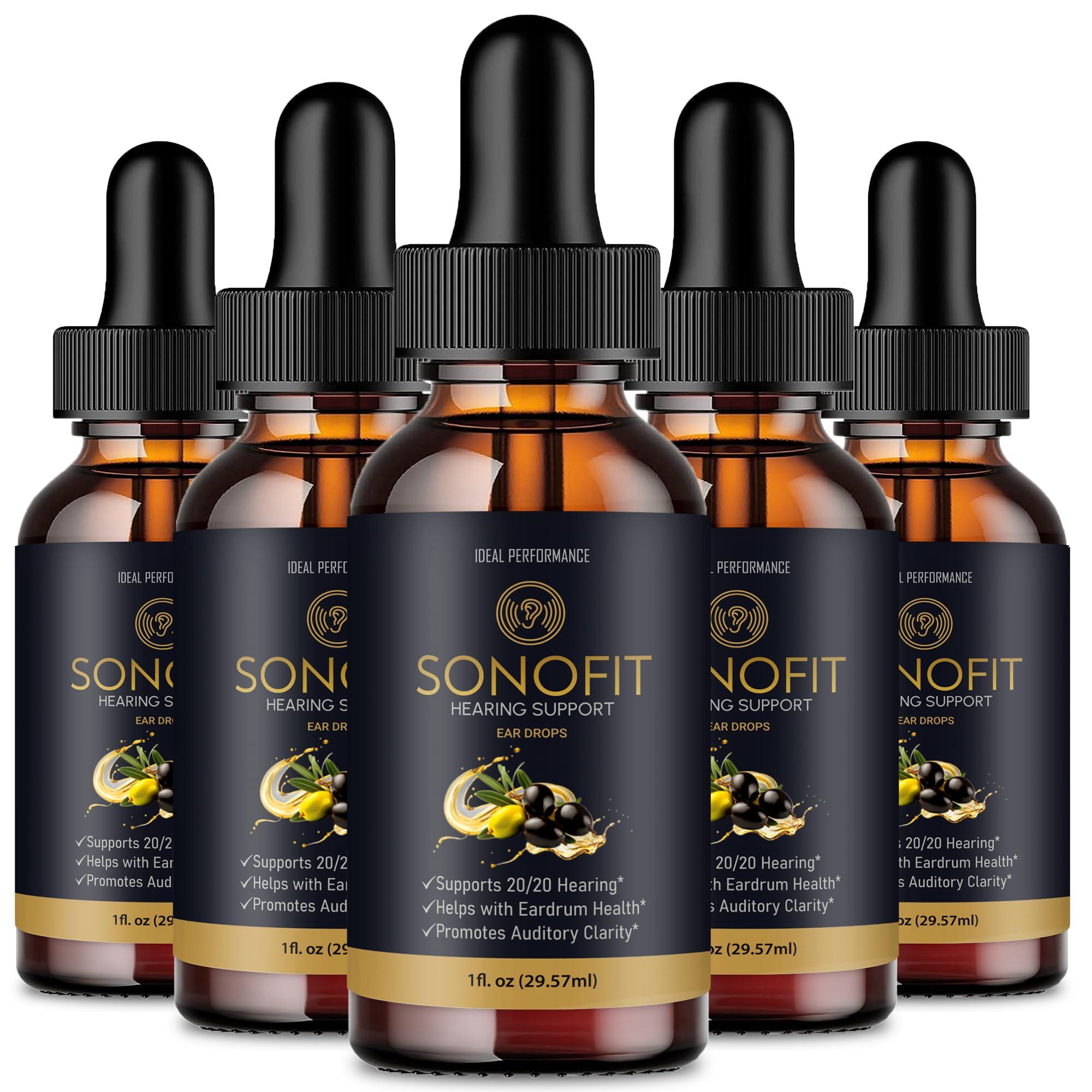 IDEAL PERFORMANCE Sonofit Tinnitus Relief for Ringing Ears Drops, Sonofit Tinnitus Supplement Sonofit Healthy Ear Support Supplement - Maximum Strength Advanced Formula Sonofit Drops Hearing Support Reviews (5 Pack)