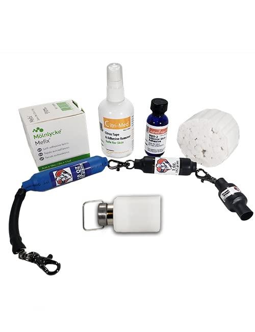 Complete Foreskin Restoration Novice Starter Kit for Beginners Kit comes complete with everything you will need to start your foreskin restoration. And just because this is a beginners kit, that doesn't mean you will get beginners results. It is easy to apply, comfortable, and a practical setup. Restore as much foreskin as you want. The centerpiece of the kit is our Novice Supercanister tugger. It won't slip off. No embarrassing situations. You can urinate without removing the device. And most important, it's comfortable to wear all day long. Kit Includes: Novice Supercanister Device. (Available in 8 sizes! -See the sizing information below.) Torpedo Tugging weight (17 ounce -482g) set. The weight set consists of 3 durable plastic wrapped skinny iron weights 3/4" diameter, with a length of stainless ball chain, and mini attachments. The chain is extra durable 18-8 Stainless steel. 1 ounce Adhesi-Med(TM) MRS adhesive, which holds the inner skin to the Supercanister. 4 ounce Citri-Med(TM) Tape and Adhesive remover, to easily & painlessly release the tape when you remove the device. Instructions QC code included in box. Select the appropriate Supercanister size based on your flaccid (soft) glans width. Use the chart to select the right size for you. Flaccid Glans (Head) Width